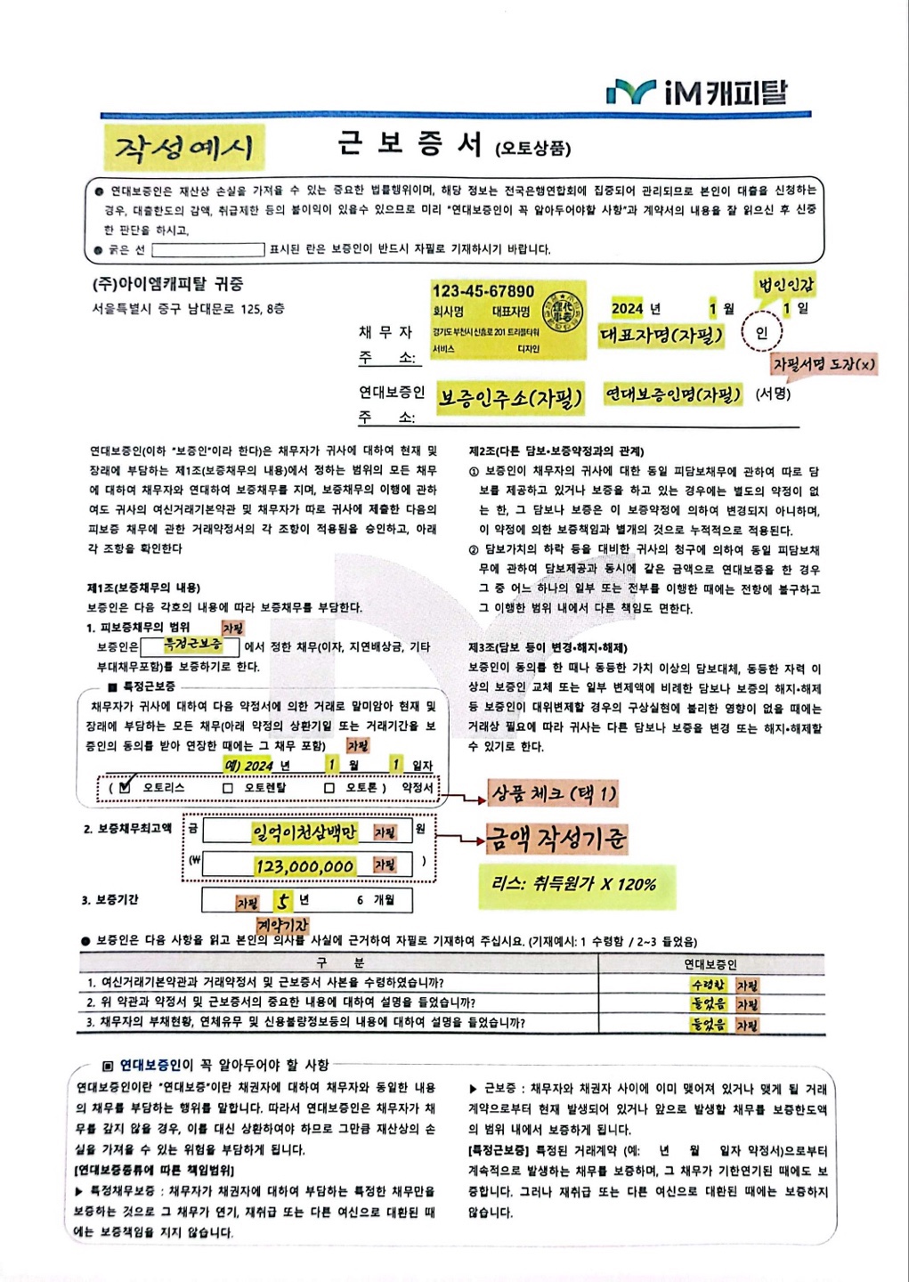 IM캐피탈 근보증서입니다.