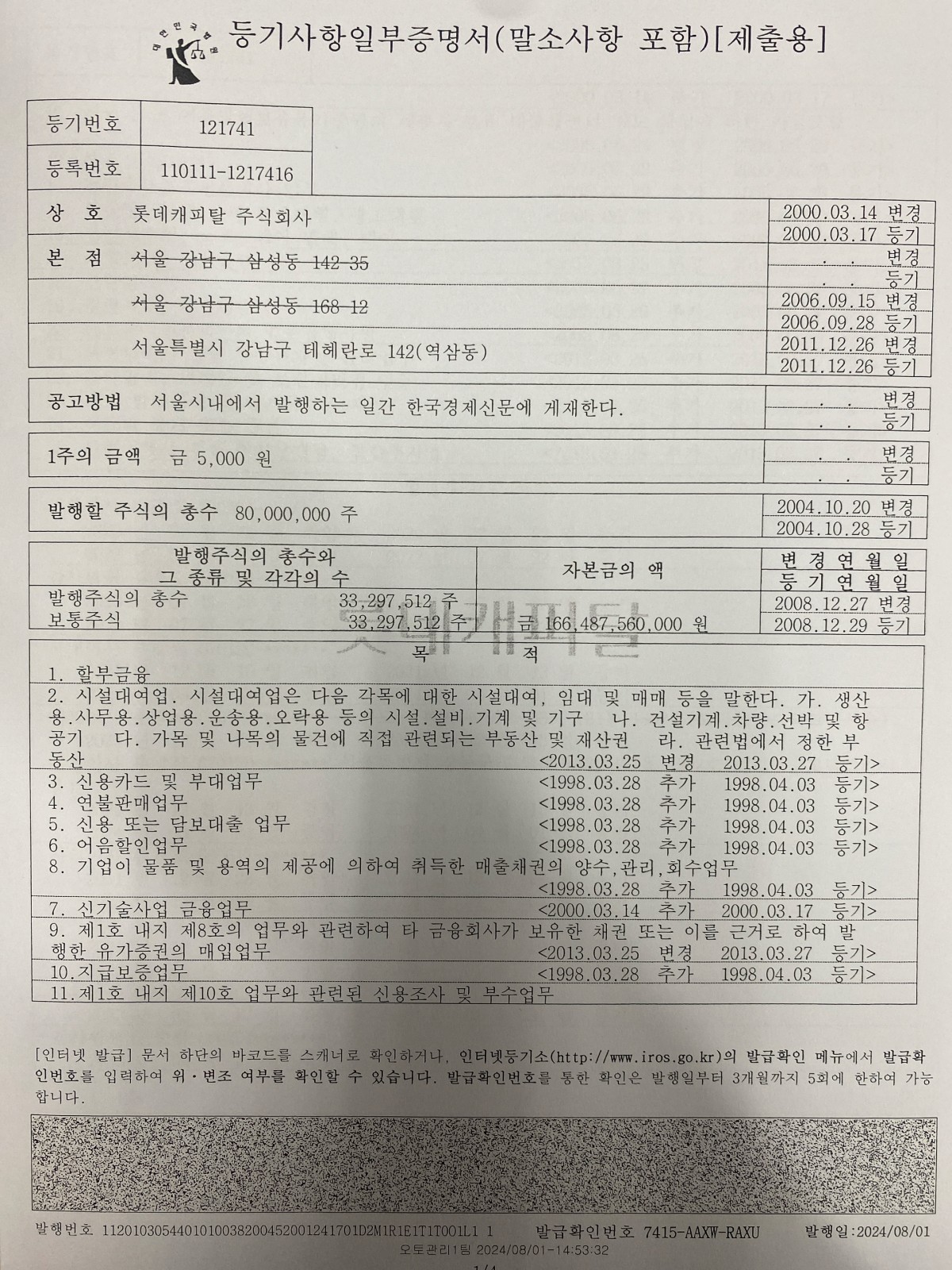 | 이전글 롯데 캐피탈 자동차 인수증입니다 |