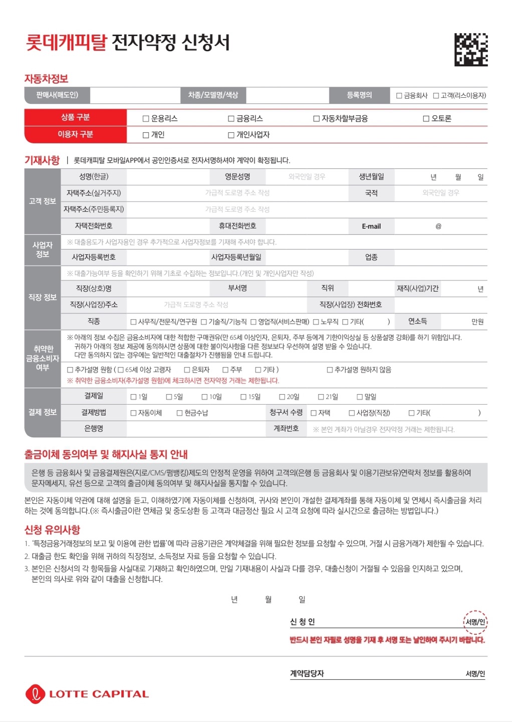 롯데캐피탈리스 전자약정신청서 > 롯데캐피탈 주요자료