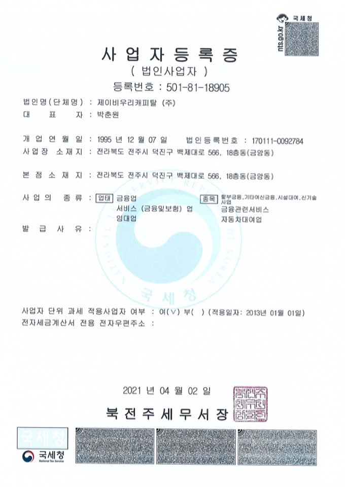 | 다음글 JB우리캐피탈 등기부등본(리스 등록시)입니다. |