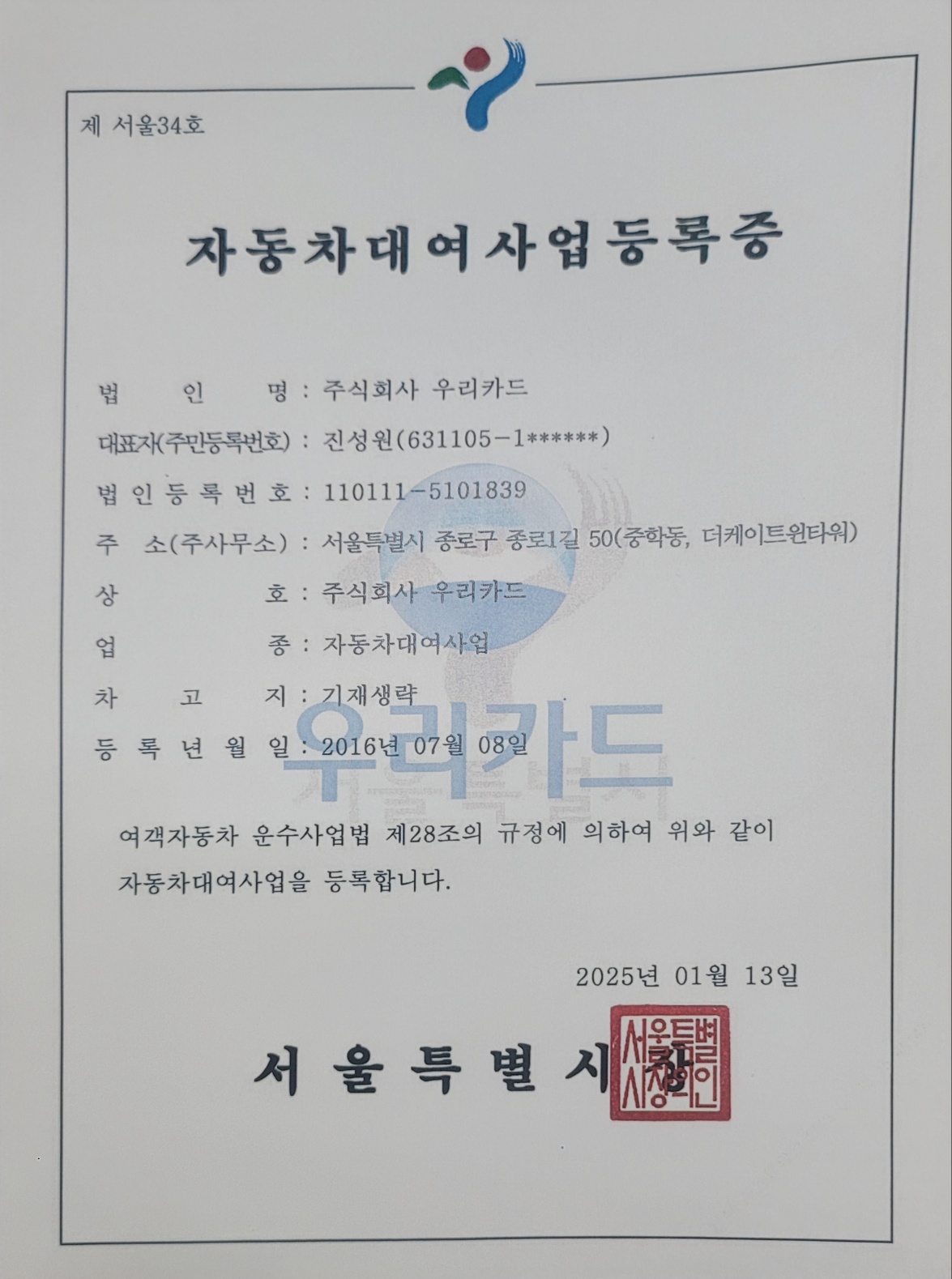 우리카드 사업자 등록증 변경본 > 우리카드 주요자료