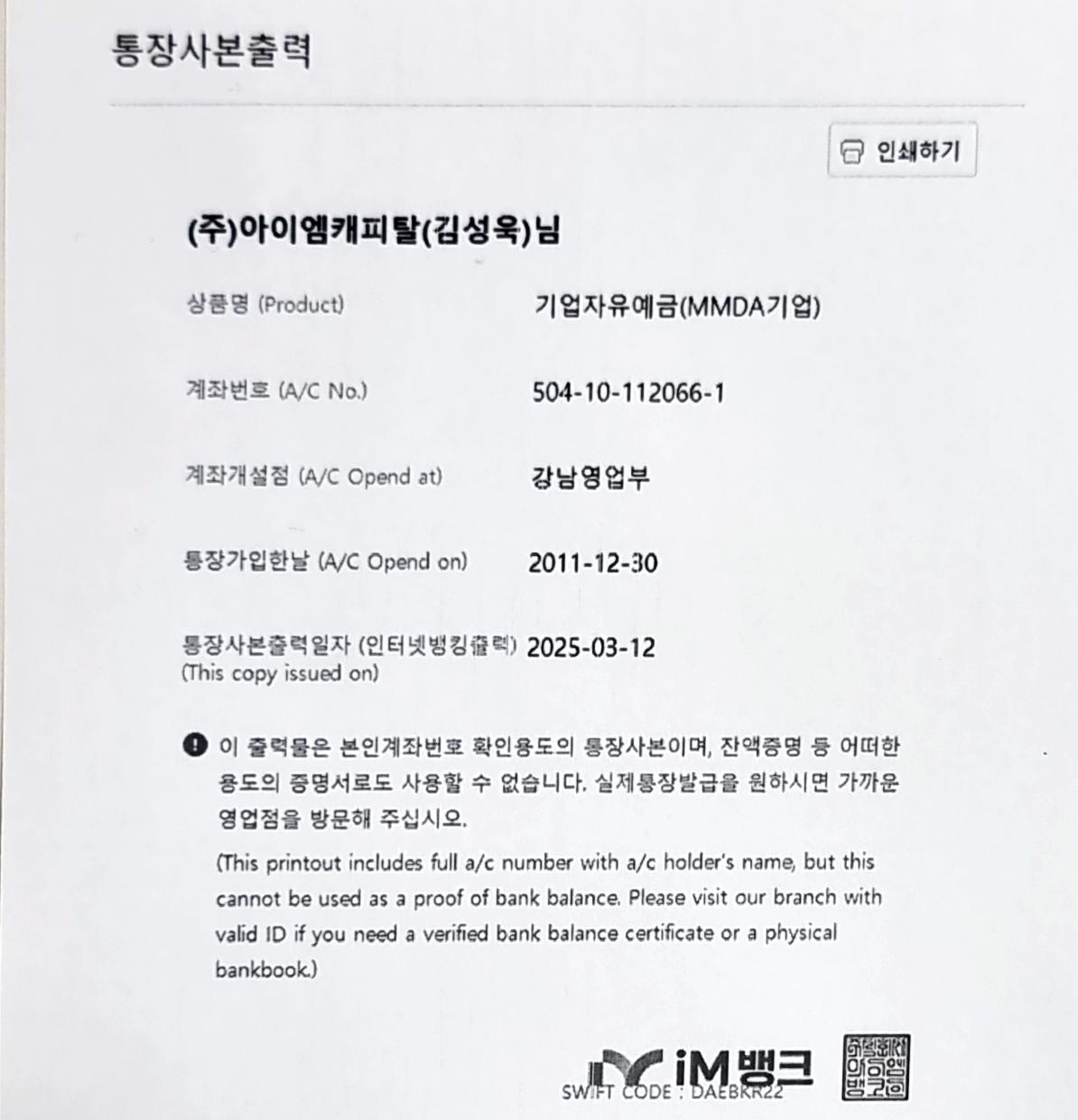 IM캐피탈 통장사본입니다. > DGB캐피탈 주요자료
