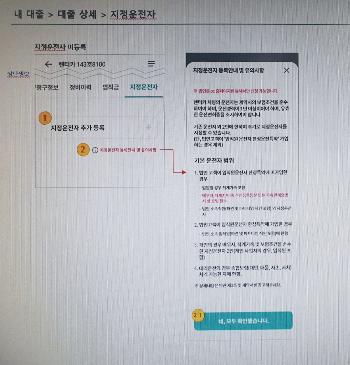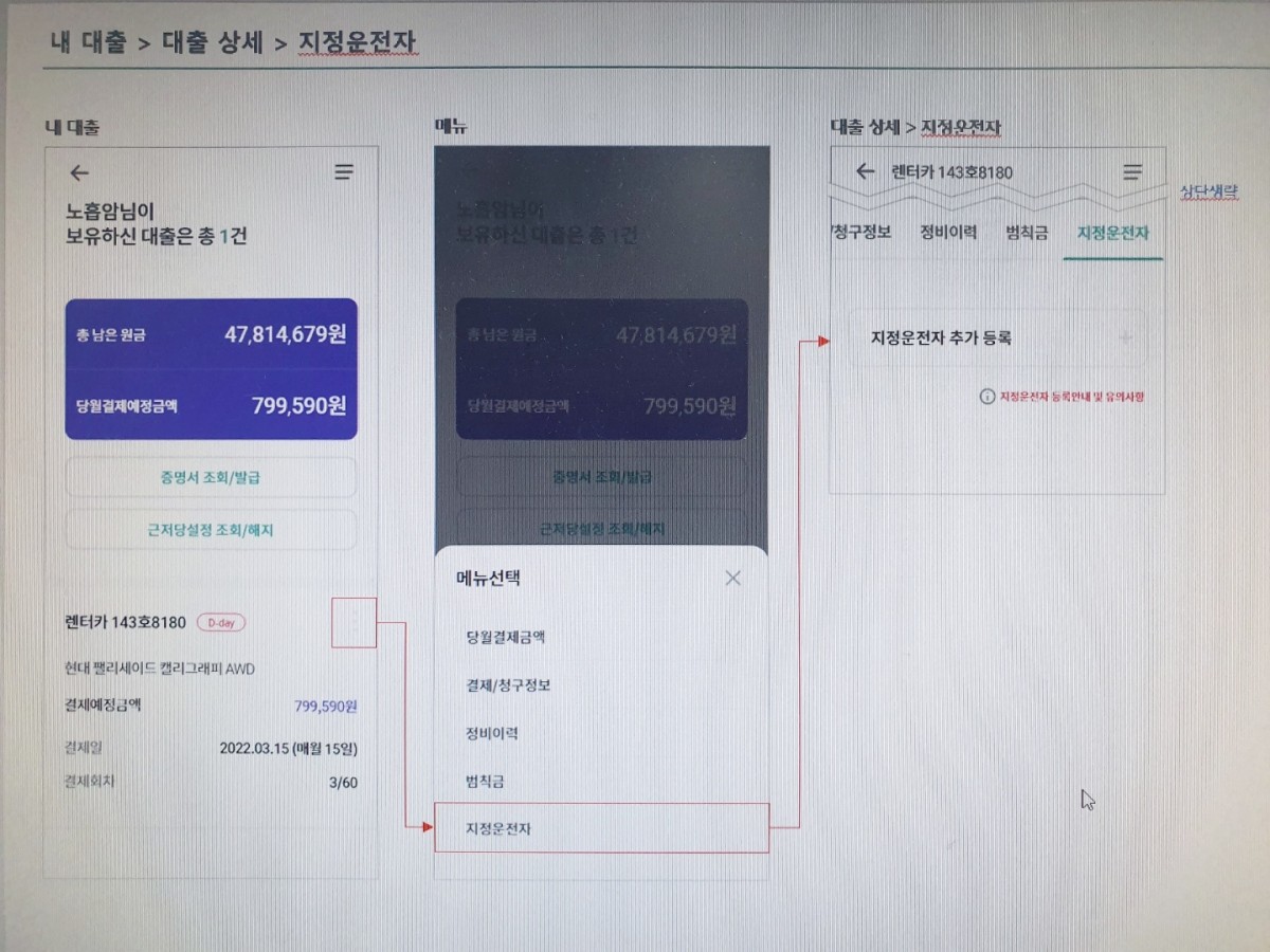 하나캐피탈 추가운전자 등록 메뉴얼입니다.