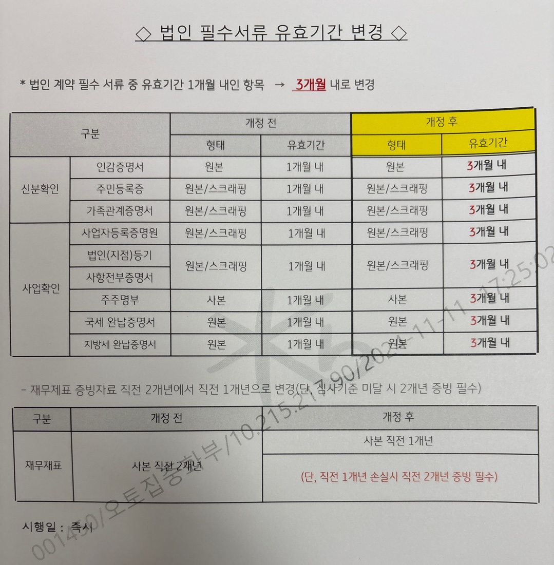 KB캐피탈 법인 필수 서류 유효기간 변경안내드립니다.