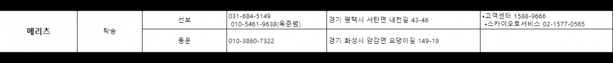 메리츠캐피탈 탁송 및 용품업체 안내입니다.