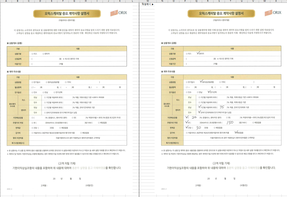오릭스 캐피탈 중요 계약사항 설명서 최신본입니다.