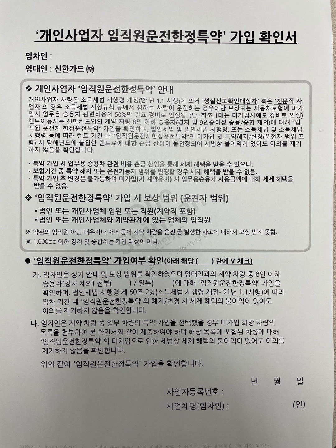 임직원 특약 가입시 가입서류입니다.0905. > 신한카드 주요자료