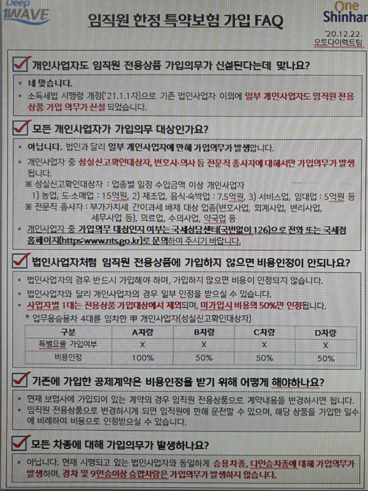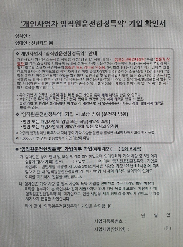 4. 임직원 보험 가입시에는 임직원 외 운행 불가. (임직원의 가족등이