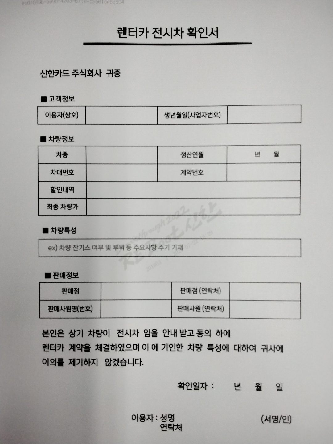 렌터카 전시차 확약서 0922. > 신한카드 주요자료