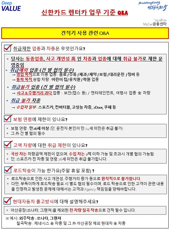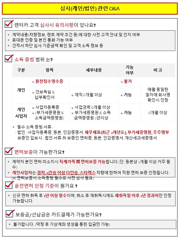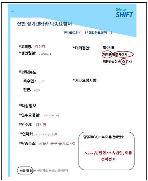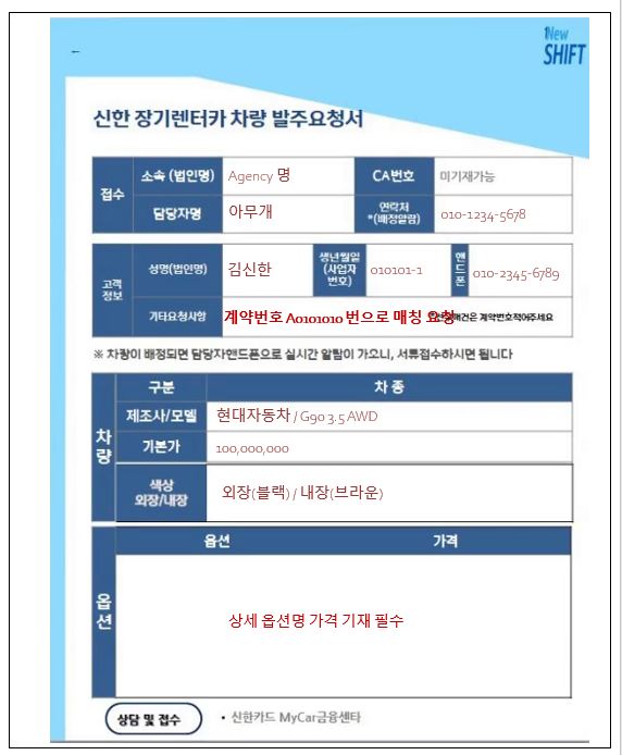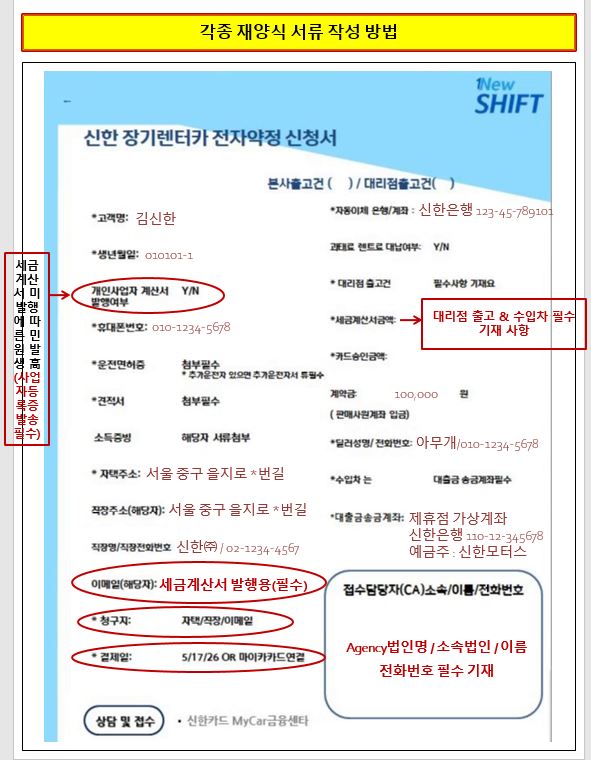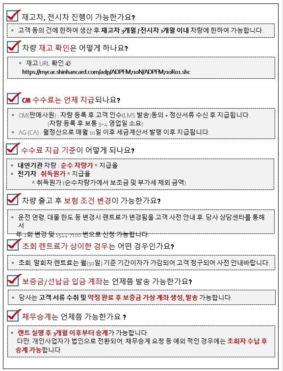 신한카드 렌트 관련 업무시 참고해주세요
