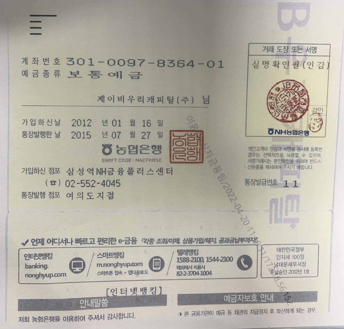 JB우리캐피탈 통장사본입니다 > 우리캐피탈 주요자료