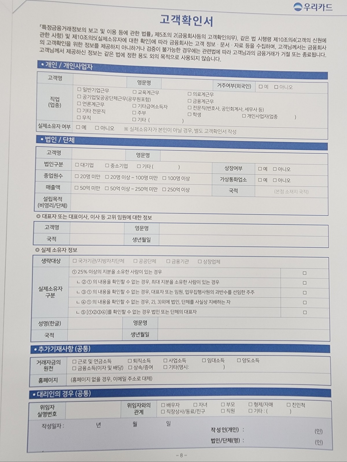 우리카드 법인 위임자 진행시 공지사항 안내드립니다.