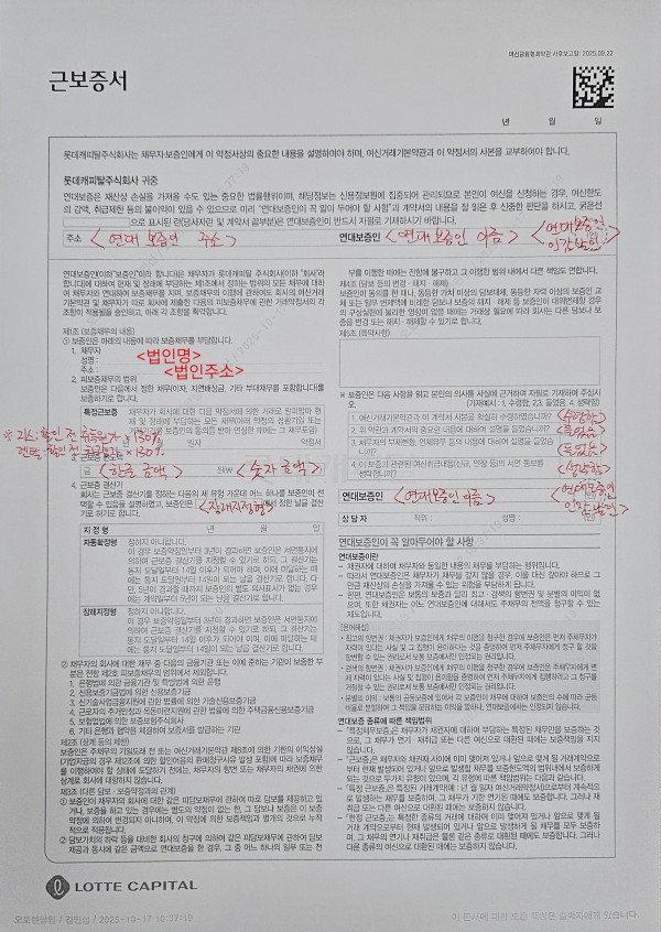 롯데캐피탈 법인근보증서 전자약정 서류입니다.