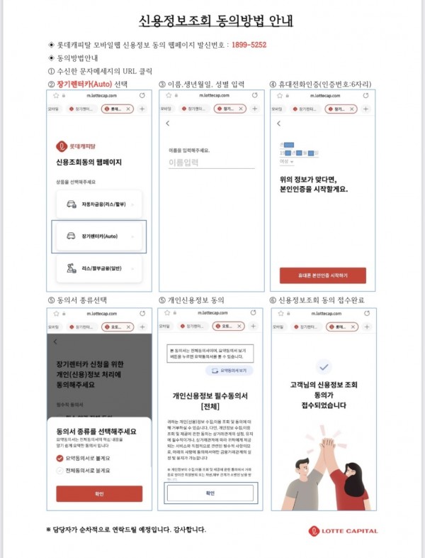 롯데캐피탈 렌트 신용정보조회 동의방법안내드립니다.